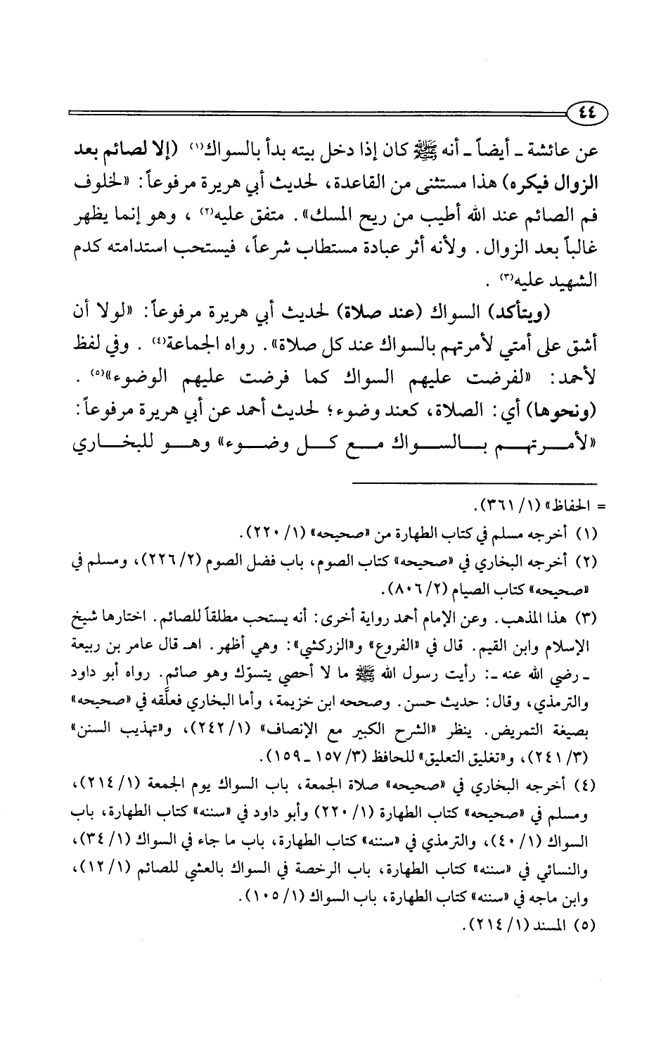 (¬4) أخرجه البخاري في "صحيحه" صلاة الجمعة، باب السواك يوم الجمعة (1/ 214)، ومسلم في "صحيحه" كتاب الطهارة (1/ 220) وأبو داود في "سننه" كتاب الطهارة، باب السواك (1/ 40)، والترمذي في "سننه" كتاب الطهارة، باب ما جاء في السواك (1/ 34)، والنسائي في "سننه" كتاب الطهارة، باب الرخصة في السواك بالعشي للصائم (1/ 12)، وابن ماجه في "سننه" كتاب الطهارة، باب السواك (1/ 105).