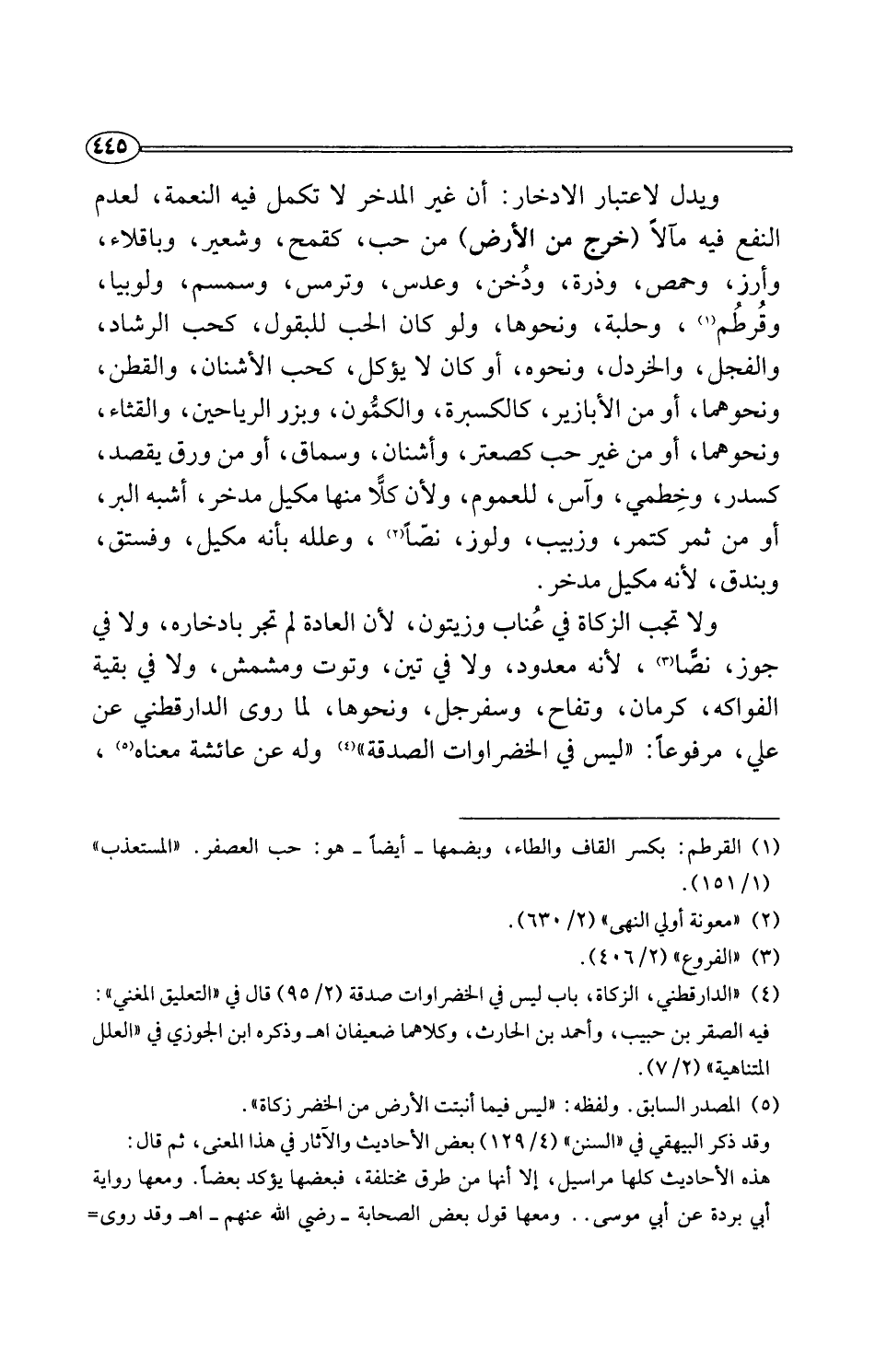 (¬5) المصدر السابق. ولفظه: "ليس فيما أنبتت الأرض من الخضر زكاة".