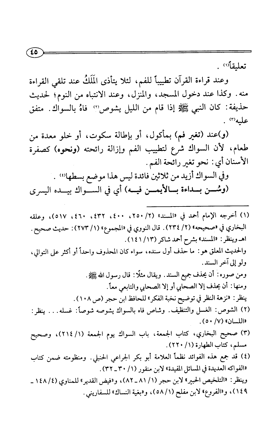 (¬3) صحيح البخاري، كتاب الجمعة، باب السواك يوم الجمعة (1/ 214)، وصحيح مسلم، كتاب الطهارة (1/ 220).