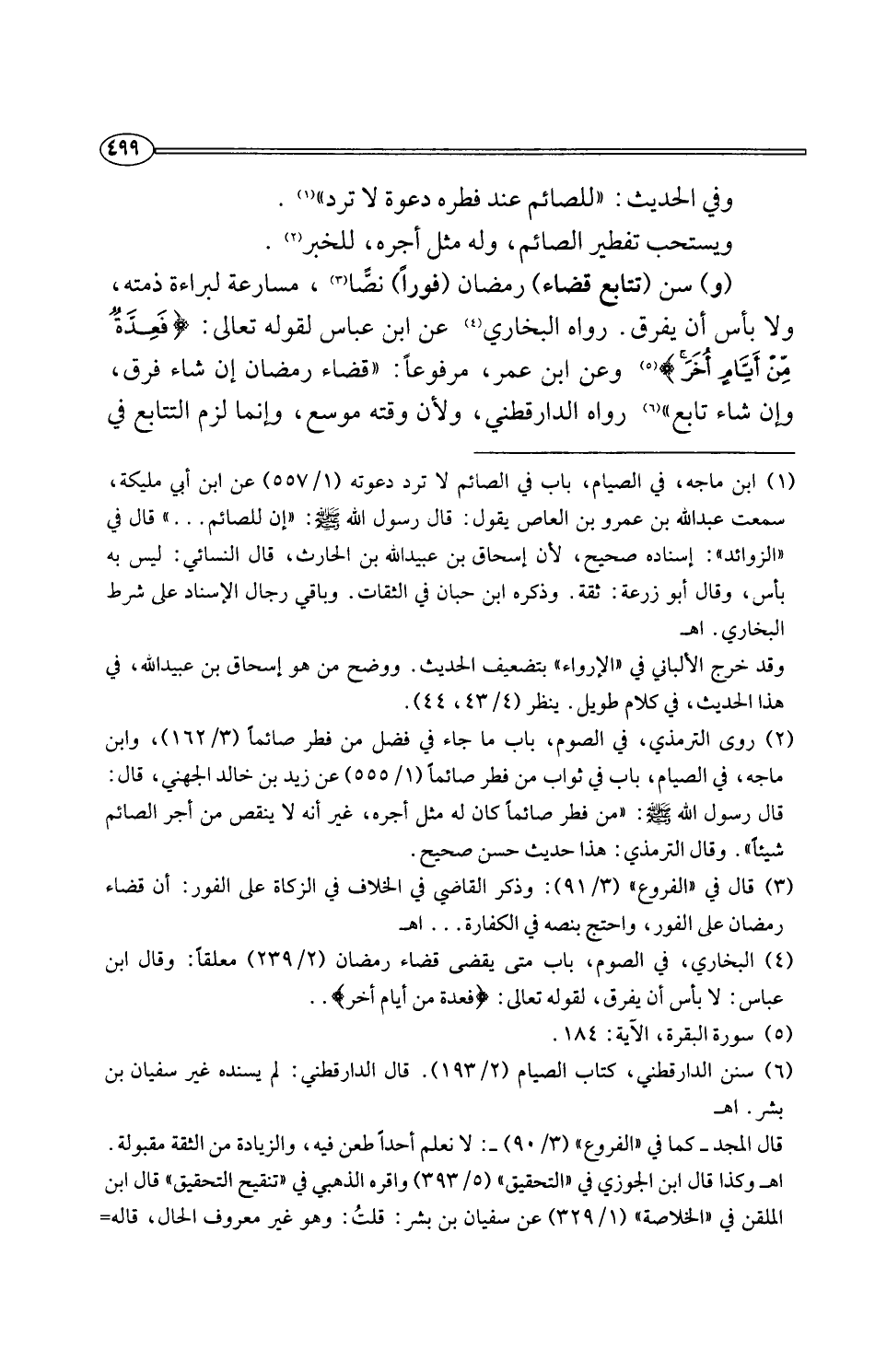 (¬4) البخاري، في الصوم، باب متى يقضى قضاء رمضان (2/ 239) معلقًا: وقال ابن عباس: لا بأس أن يفرق، لقوله تعالى: {فَعِدَّةٌ مِنْ أَيَّامٍ أُخَرَ} ..