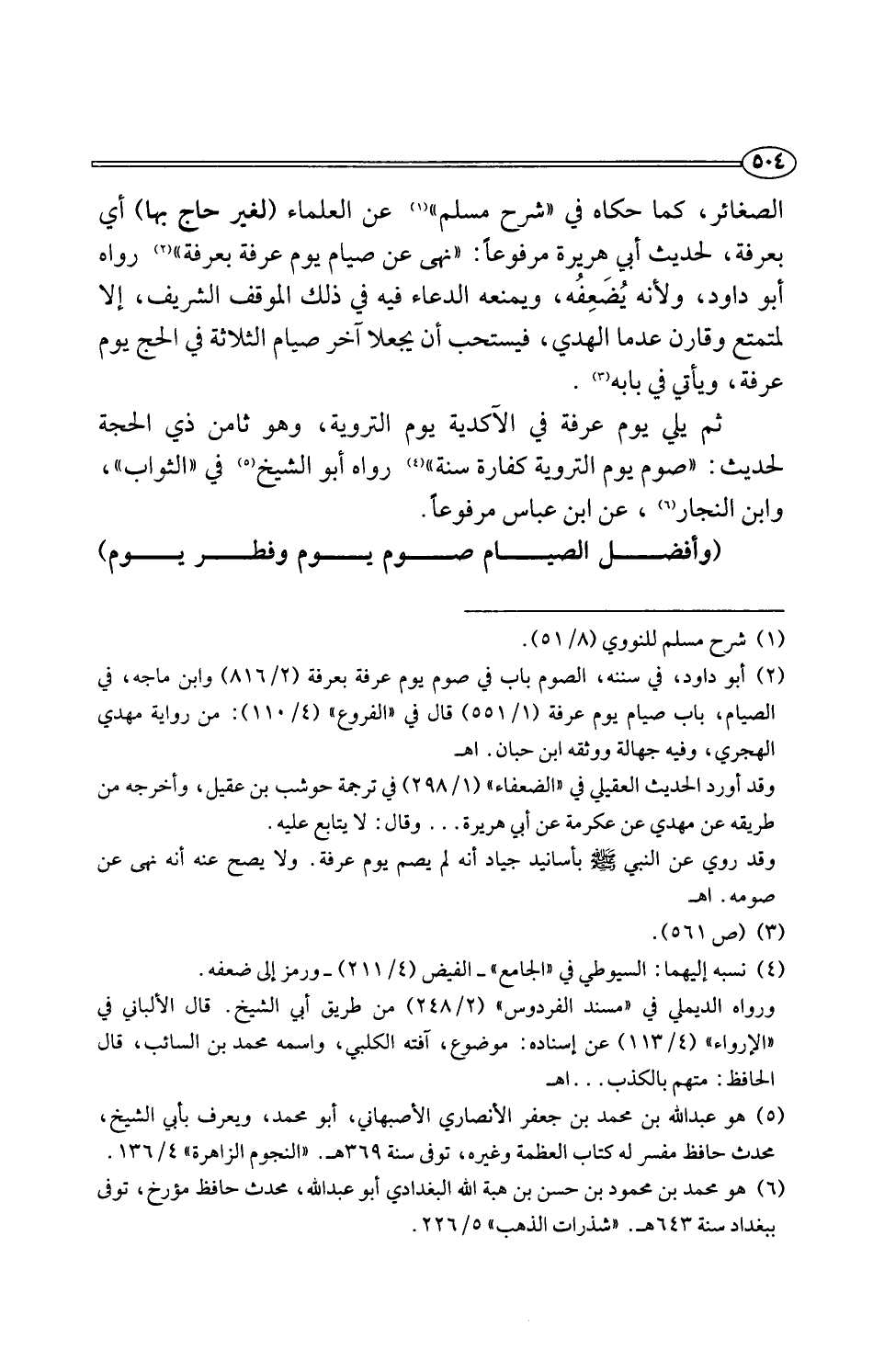 (¬2) أبو داود، في سننه، الصوم باب في صوم يوم عرفة بعرفة (2/ 816) وابن ماجه، في الصيام، باب صيام يوم عرفة (1/ 551) قال في "الفروع" (4/ 110): من رواية مهدي الهجري، وفيه جهالة ووثقه ابن حبان. اهـ