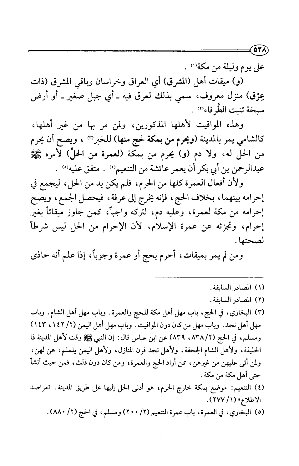 (¬5) البخاري، في العمرة، باب عمرة التنعيم (2/ 200) ومسلم، في الحج (2/ 880).