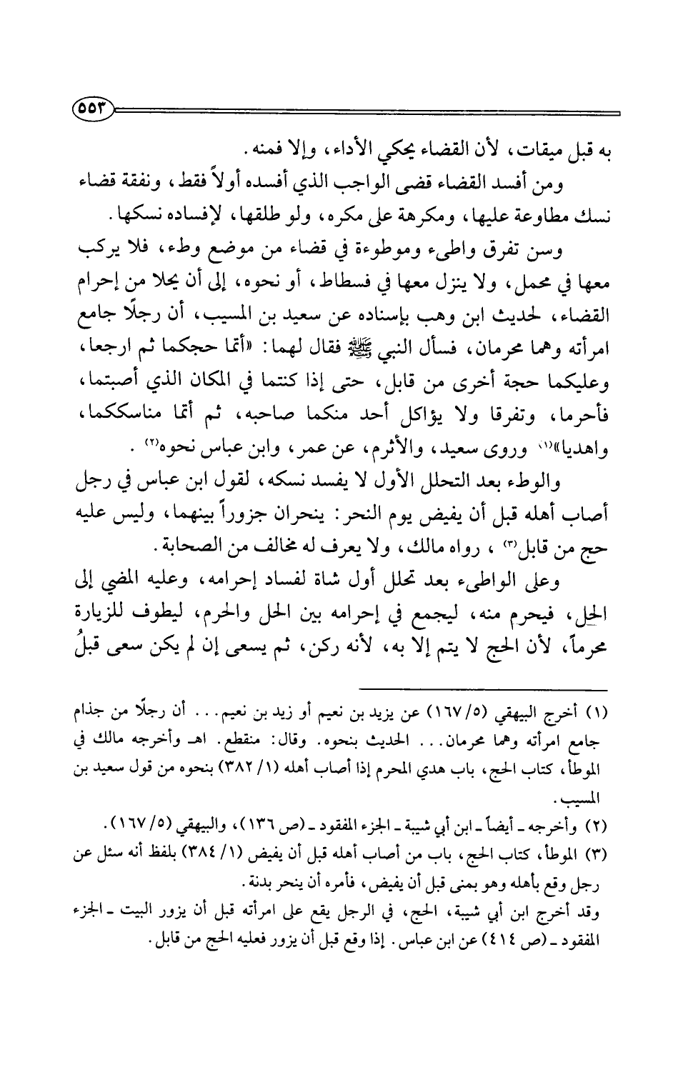 (¬3) الموطأ، كتاب الحج، باب من أصاب أهله قبل أن يفيض (1/ 384) بلفظ أنه سئل عن رجل وقع بأهله وهو بمنى قبل أن يفيض، فأمره أن ينحر بدنة.