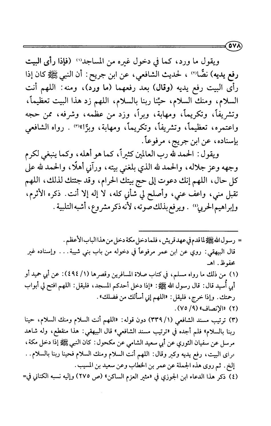 (¬3) ترتيب مسند الشافعي (1/ 339) دون قوله: "اللهم أنت السلام ومنك السلام، حينا ربنا بالسلام" فلم أجده في "ترتيب مسند الشافعي" قال البيهقي: هذا منقطع، وله شاهد مرسل عن سفيان الثوري عن أبي سعيد الشامي عن مكحول: كان النبي -صلى اللَّه عليه وسلم- إذا دخل مكة، فرأى البيت، رفع يديه وكبر وقال: اللهم أنت السلام ومنك السلام فحينا ربنا بالسلام. . إلخ. ثم روى هذه الجملة عن عمر بن الخطاب وعن سعيد بن المسيب.