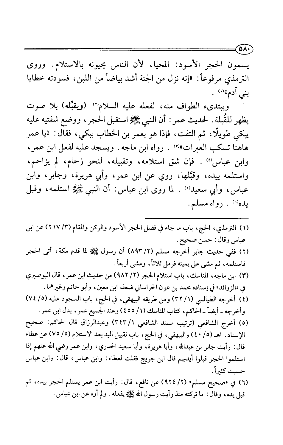 (¬5) أخرج الشافعي (ترتيب مسند الشافعي 1/ 343) وعبد الرزاق قال الحاكم: صحيح الإسناد. اهـ (5/ 40) والبيهقي، في الحج، باب تقبيل اليد بعد الاستلام (5/ 75) عن عطاء قال: رأيت جابر بن عبد اللَّه، وأبا هريرة، وأبا سعيد الخدري، وابن عمر رضي اللَّه عنهم إذا استلموا الحجر قبلوا أيديهم قال ابن جريج فقلت لعطاء: وابن عباس، قال: وابن عباس حسبت كثيرًا.
