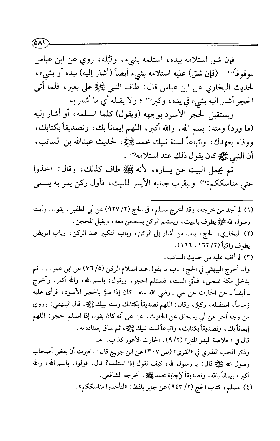(¬2) البخاري، الحج، باب من أشار إلى الركن، وباب التكبير عند الركن، وباب المريض يطوف راكبًا (2/ 162، 166).