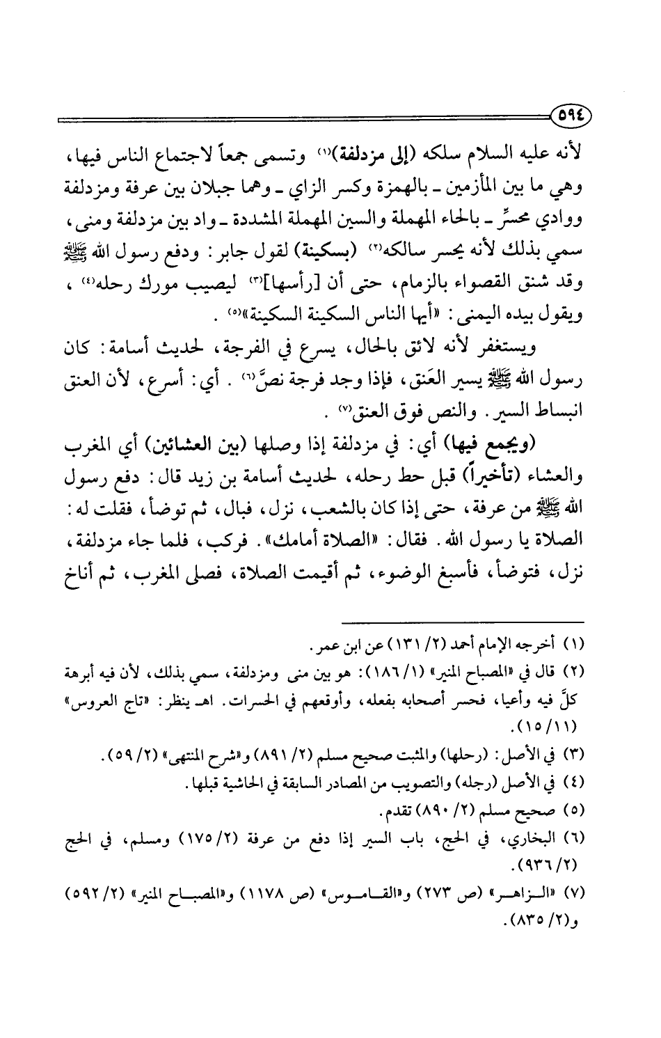(¬6) البخاري، في الحج، باب السير إذا دفع من عرفة (2/ 175) ومسلم، في الحج (2/ 936).