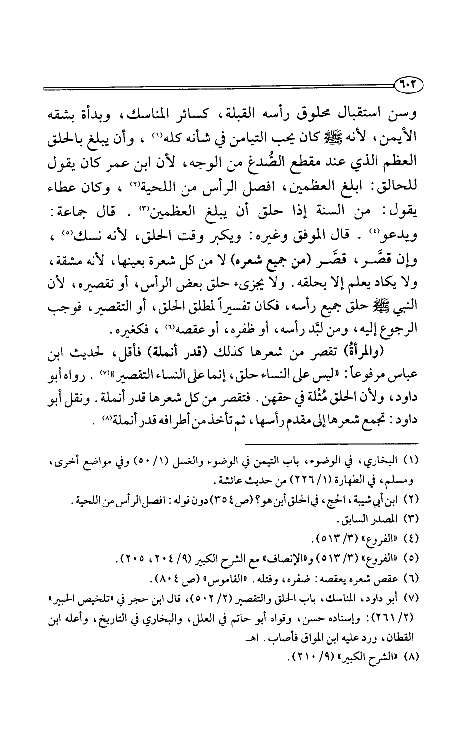 (¬2) ابن أبي شيبة، الحج، في الحلق أين هو؟ (ص 354) دون قوله: افصل الرأس من اللحية.