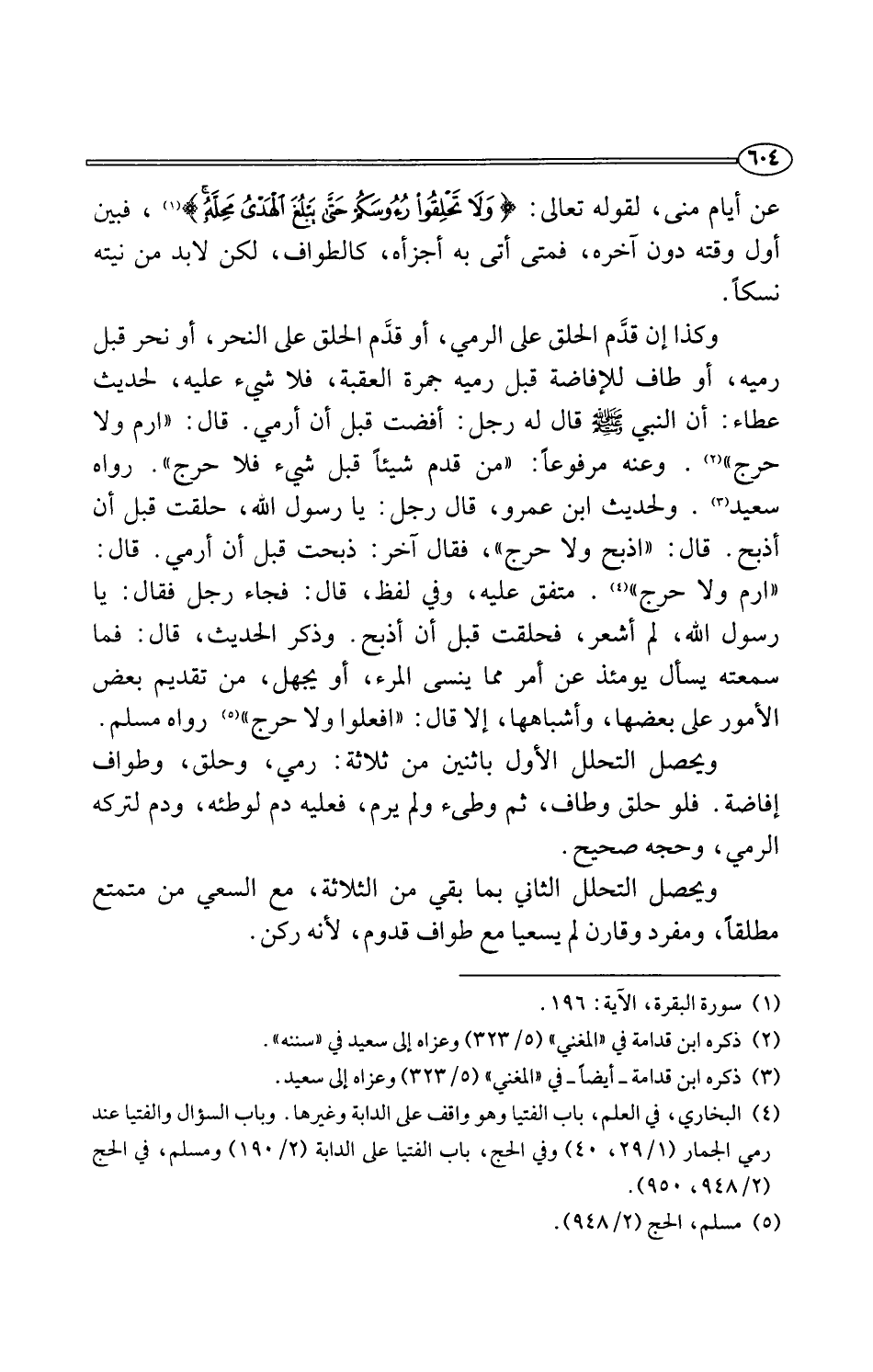 (¬4) البخاري، في العلم، باب الفتيا وهو: اقف على الدابة وغيرها. وباب السؤال والفتيا عند رمي الجمار (1/ 29، 40) وفي الحج، باب الفتيا على الدابة (2/ 190) ومسلم، في الحج (2/ 948، 950).