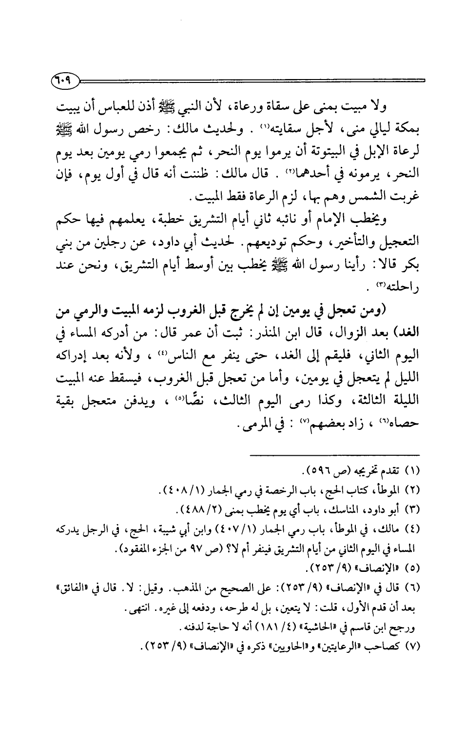 (¬4) مالك، في الموطأ، باب رمي الجمار (1/ 407) وابن أبي شيبة، الحج، في الرجل يدركه المساء في اليوم الثاني من أيام التشريق فينفر أم لا؟ (ص 97 من الجزء المفقود).