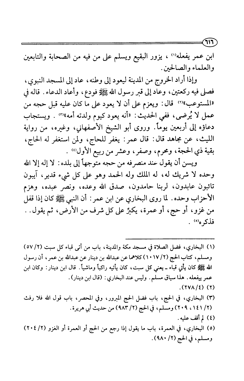 (¬5) البخاري، في العمرة، باب ما يقول إذا رجع من الحج أو العمرة أو الغزو (2/ 204) ومسلم، في الحج (2/ 980).