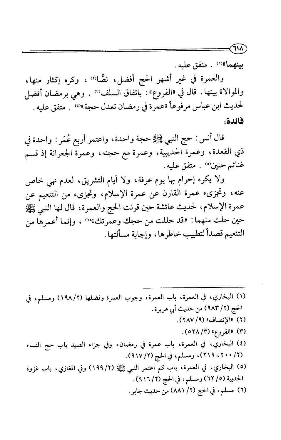 (¬5) البخاري، في العمرة، باب كم اعتمر النبي -صلى اللَّه عليه وسلم- (2/ 199) وفي المغازي، باب غزوة الحديبة (5/ 62) ومسلم، في الحج (2/ 916).