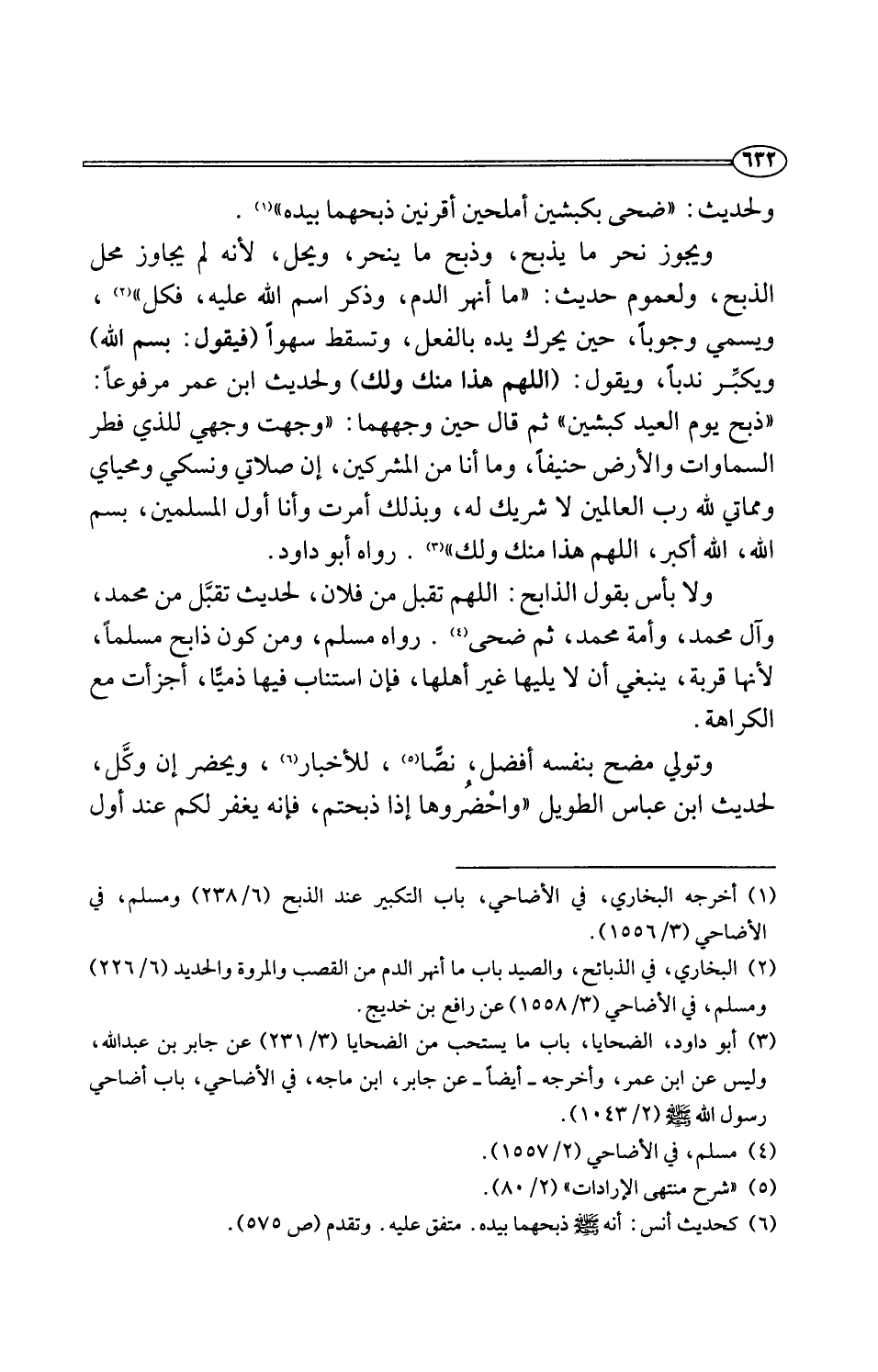 (¬6) كحديث أنس: أنه -صلى اللَّه عليه وسلم- ذبحهما بيده. متفق عليه. وتقدم (ص 575).