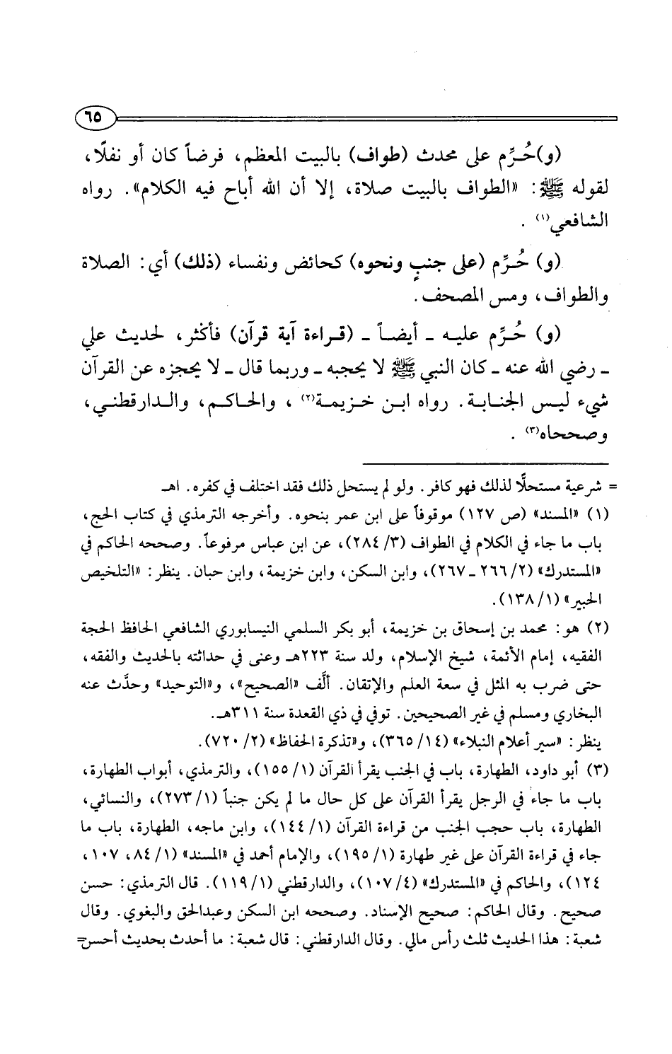 (¬2) هو: محمد بن إسحاق بن خزيمة، أبو بكر السلمي النيسابوري الشافعي الحافظ الحجة الفقيه، إمام الأئمة، شيخ الإسلام، ولد سنة 223 هـ وعنى في حداثته بالحديث والفقه، حتى ضرب به المثل في سعة العلم والإتقان. ألف "الصحيح"، و"التوحيد" وحدَّث عنه البخاري ومسلم في غير الصحيحين. توفي في ذي القعدة سنة 311 هـ.