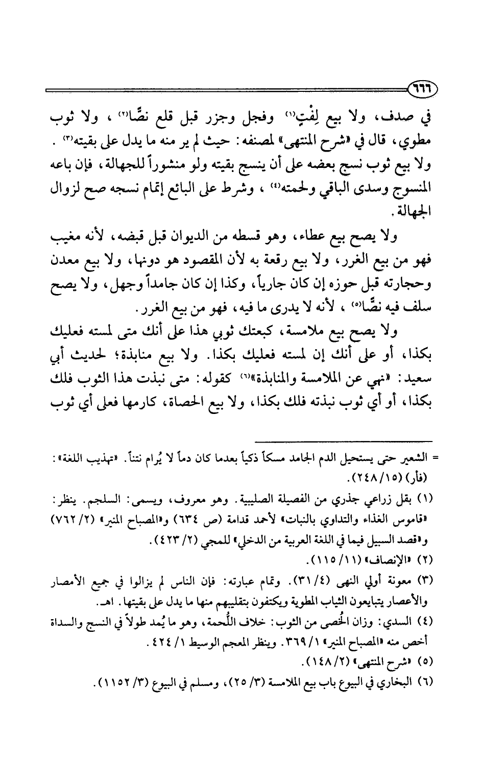 (¬6) البخاري في البيوع باب بيع الملامسة (3/ 25)، ومسلم في البيوع (3/ 1152).