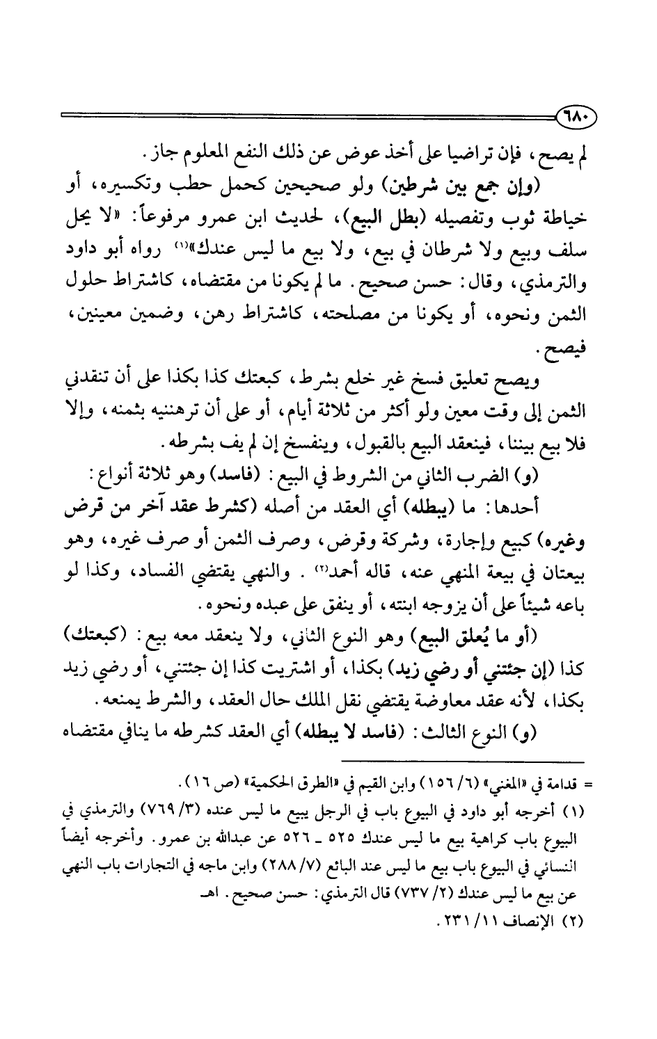 (¬1) أخرجه أبو داود في البيوع باب في الرجل يبيع ما ليس عنده (3/ 769) والترمذي في البيوع باب كراهية بيع ما ليس عندك 525 - 526 عن عبد اللَّه بن عمرو. وأخرجه أيضًا النسائي في البيوع باب بيع ما ليس عند البائع (7/ 288) وابن ماجه في التجارات باب النهي عن بيع ما ليس عندك (2/ 737) قال الترمذي: حسن صحيح. اهـ
