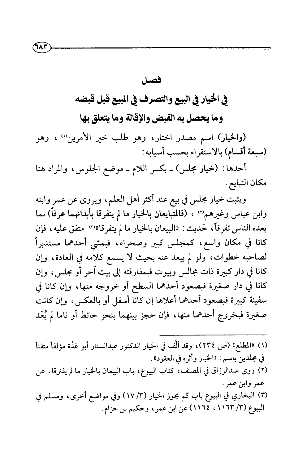 (¬1) "المطلع" (ص 234)، وقد ألَّف في الخيار الدكتور عبد الستار أبو غدَّة مؤلفًا متقنًا في مجلدين باسم: "الخيار وأثره في العقود".