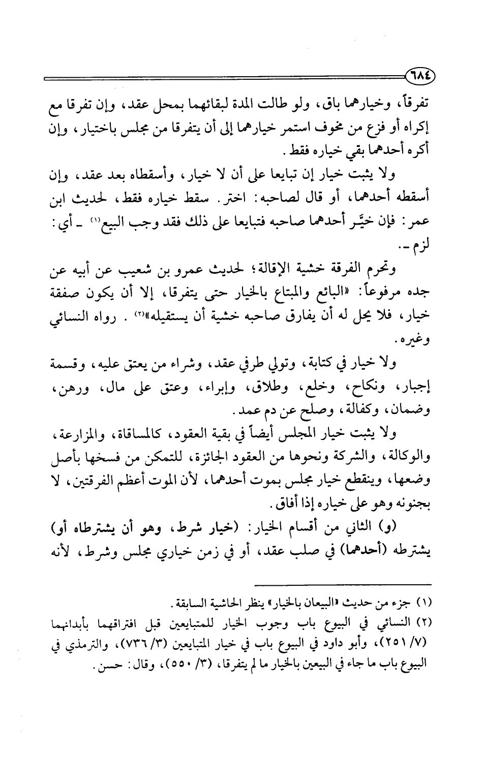 (¬2) النسائي في البيوع باب وجوب الخيار للمتبايعين قبل افتراقهما بأبدانهما (7/ 251)، وأبو داود في البيوع باب في خيار المتبايعين (3/ 736)، والترمذي في البيوع باب ما جاء في البيعين بالخيار ما لم يتفرقا، (3/ 550)، وقال: حسن.