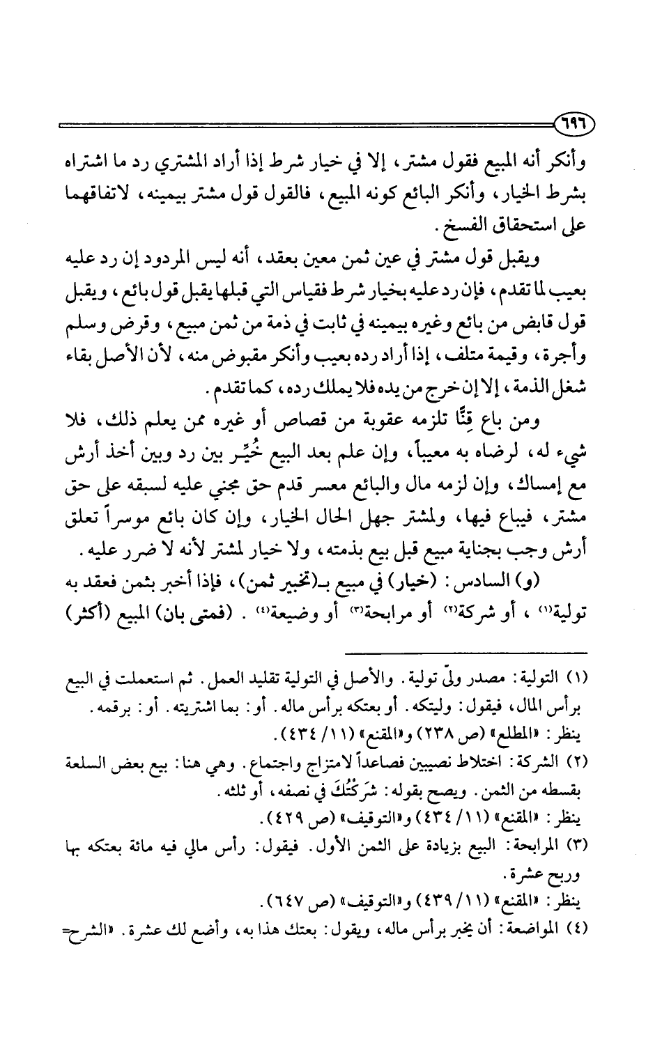 (¬3) المرابحة: البيع بزيادة على الثمن الأول. فيقول: رأس مالي فيه مائة بعتكه بها وربح عشرة.