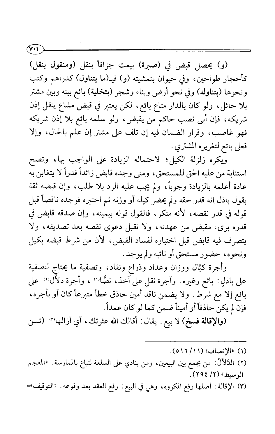 (¬3) الإقالة: أصلها رفع المكروه، وهي في البيع: رفع العقد بعد وقوعه. "التوقيف" =