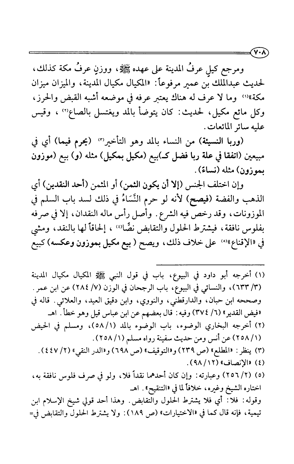 (¬5) (2/ 256) وعبارته: وإن كان أحدهما ناقدًا فلا، ولو في صرت فلوس نافقة به، اختاره الشيخ وغيره، خلافًا لما في "التنقيح". اهـ