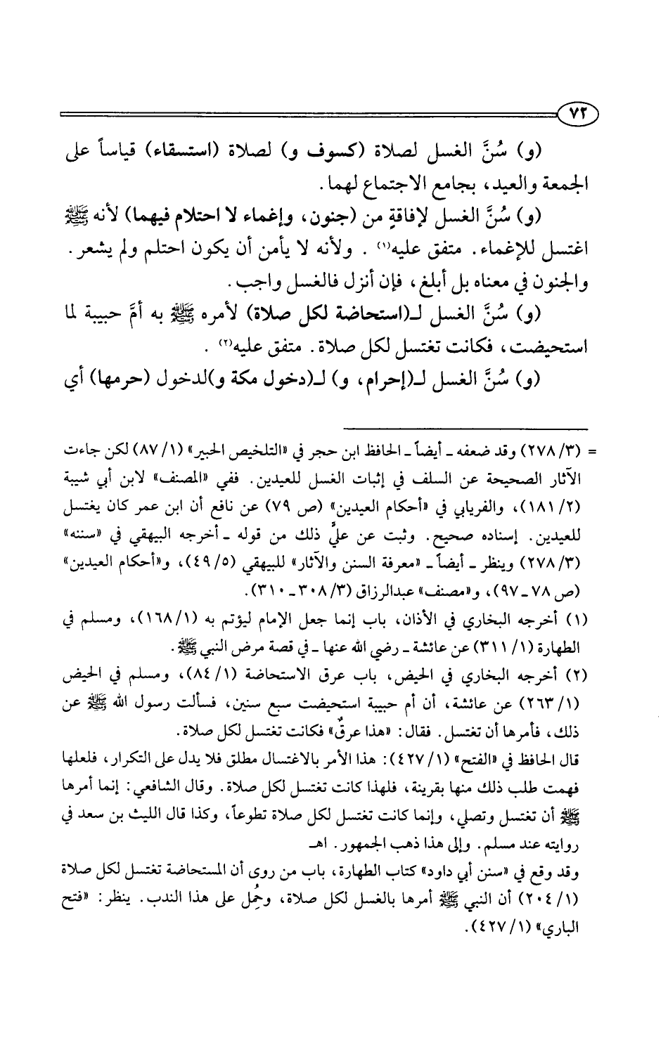 (¬2) أخرجه البخاري في الحيض، باب عرق الاستحاضة (1/ 84)، ومسلم في الحيض (1/ 263) عن عائشة، أن أم حبيبة استحيضت سبع سنين، فسألت رسول اللَّه -صلى اللَّه عليه وسلم- عن ذلك، فأمرها أن تغتسل. فقال: "هذا عرقٌ" فكانت تغتسل لكل صلاة.
