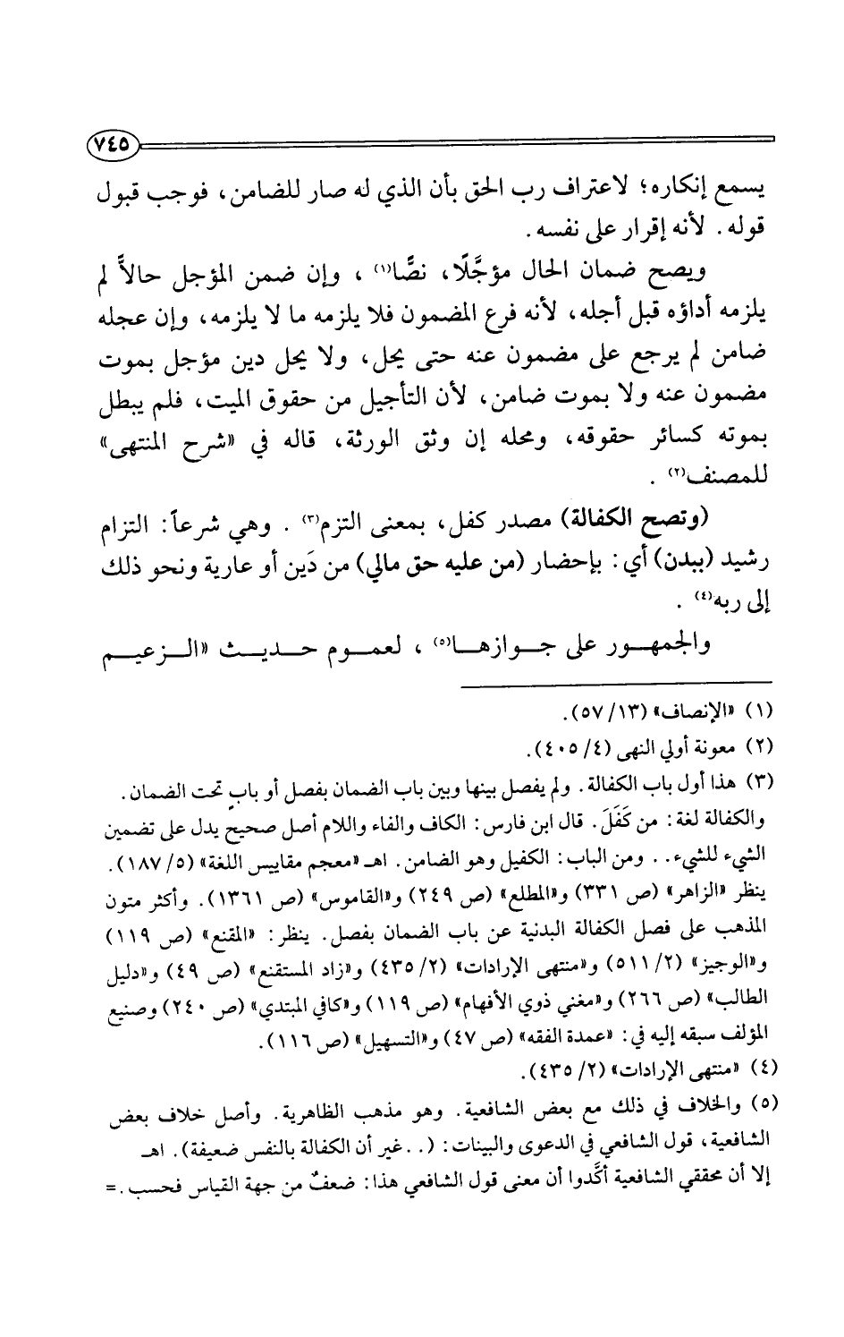 (¬5) والخلاف في ذلك مع بعض الشافعية. وهو مذهب الظاهرية. وأصل خلاف بعض الشافعية، قول الشافعي في الدعوى والبينات: (. . . غير أن الكفالة بالنفس ضعيفة). اهـ
