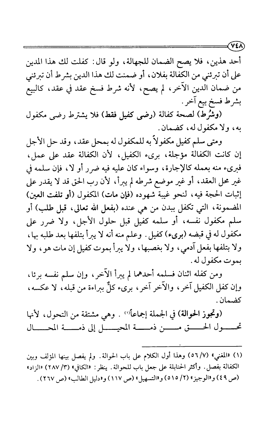 (¬1) "المغني" (7/ 56) وهذا أول الكلام عل باب الحوالة. ولم يفصل بينها المؤلف وبين الكفالة بفصل. وأكثر الحنابلة على جعل باب للحوالة. ينظر: "الكافي" (3/ 287) "الزاد" (ص 49) و"الوجيز" (2/ 515) و"التسهيل" (ص 117) و"دليل الطالب" (ص 267).