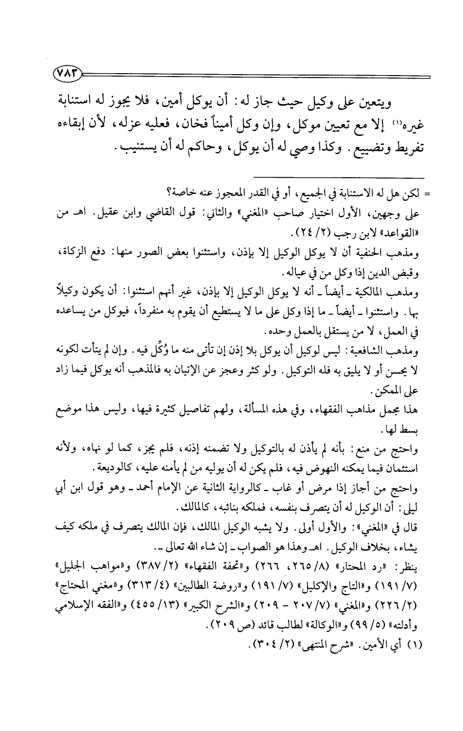 ينظر: "رد المحتار" (8/ 265، 266) و"تحفة الفقهاء" (2/ 387) و"مواهب الجليل" (7/ 191) و"التاج والإكليل" (7/ 191) و"روضة الطالبين" (4/ 313) و"مغني المحتاج" (2/ 226) و"المغني" (7/ 207 - 209) و"الشرح الكبير" (13/ 455) و"الفقه الإسلامي وأدلته" (5/ 99) و"الوكالة" لطالب قائد (ص 259).
