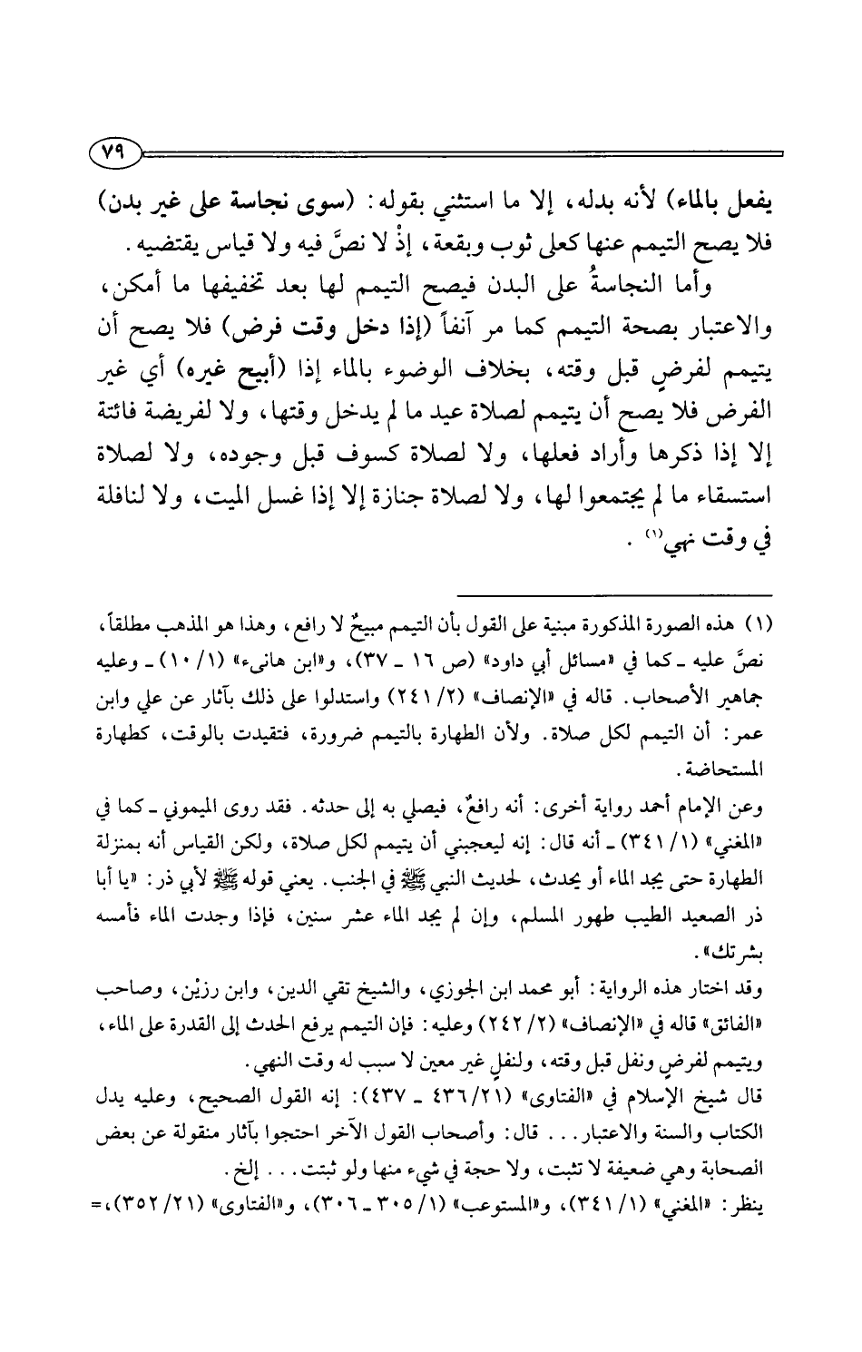 ينظر: "المغني" (1/ 341)، و"المستوعب" (1/ 305 - 306)، و"الفتاوى" (21/ 352)، =