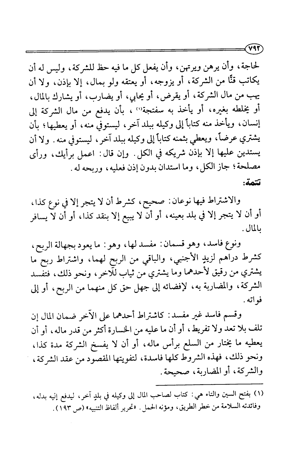 (¬1) بفتح السين والتاء هي: كتاب لصاحب المال إلى وكيله في بلدٍ آخر، ليدفع إليه بدله، وفائدته السلامة من خطر الطريق، ومؤنه الحمل. "تحرير ألفاظ التنبيه" (ص 193).