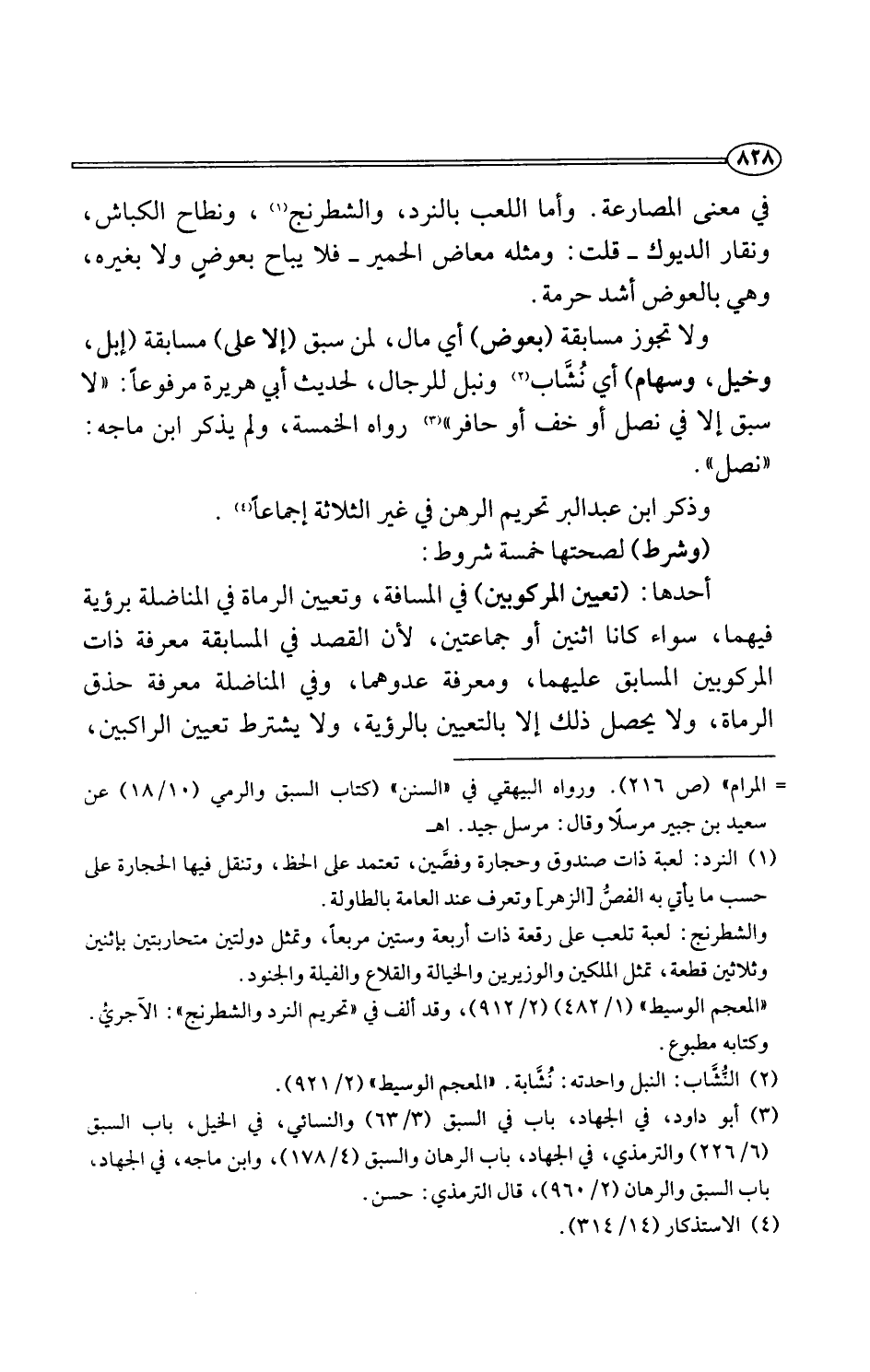 (¬3) أبو داود، في الجهاد، باب في السبق (3/ 63) والنسائي، في الخيل، باب السبق (6/ 226) والترمذي، في الجهاد، باب الرهان والسبق (4/ 178)، وابن ماجه، في الجهاد، باب السبق والرهان (2/ 960)، قال الترمذي: حسن.