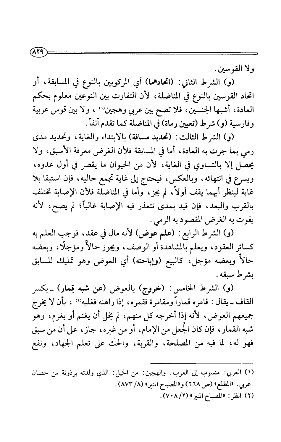 (¬1) العربي: منسوب إلى العرب. والهجين: من الخيل: الذي ولدته برذونة من حصان عربي: "المطلع" (ص 268) و"المصباح المنير" (8/ 873).