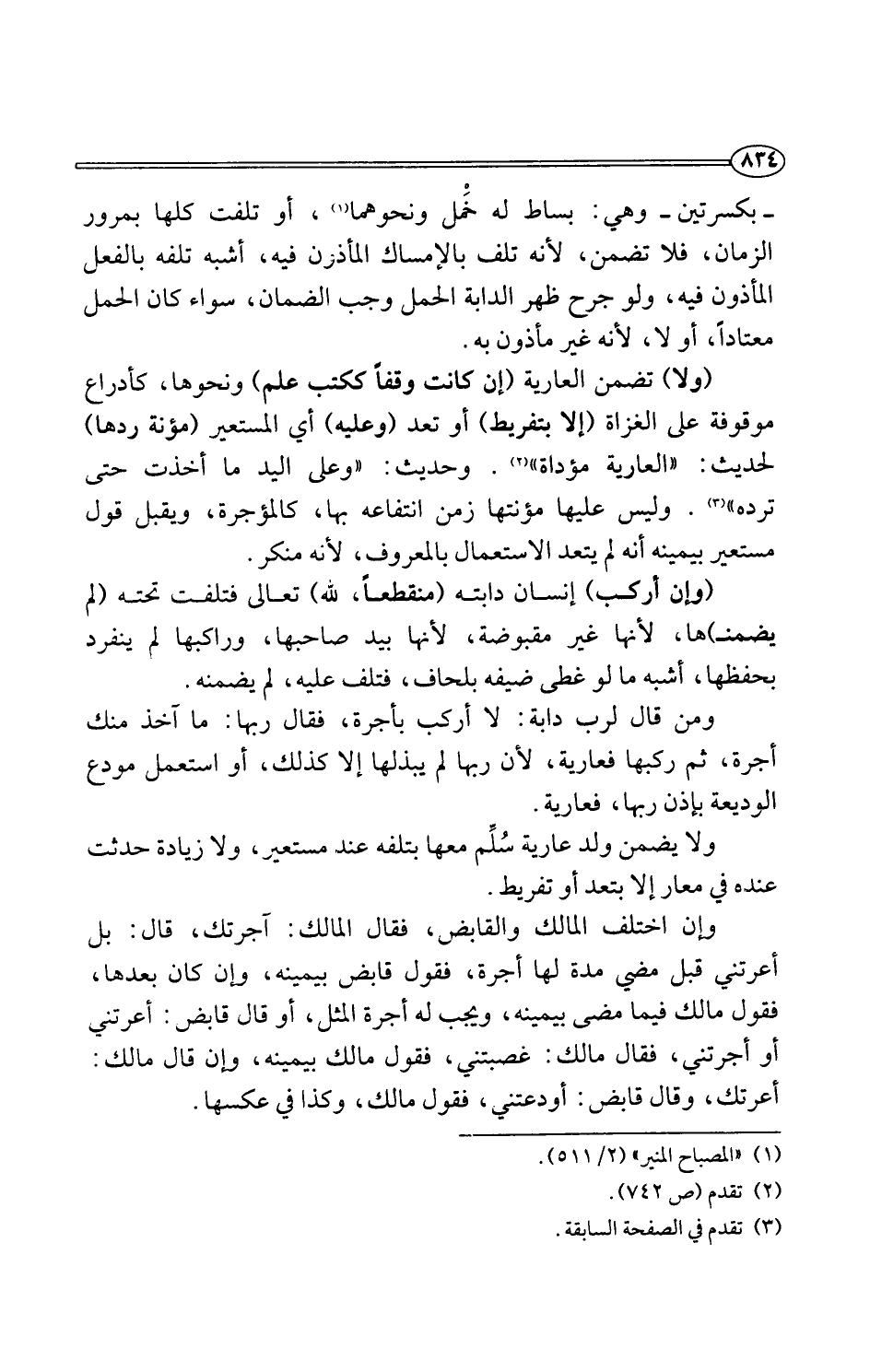 (ولا) تضمن العارية (إن كانت وقفًا ككتب علم) ونحوها، كأدراع موقوفة على الغزاة (إلا بتفريط) أو تعد (وعليه) أي المستعير (مؤنة ردها) لحديث: "العارية مؤداة" (¬2). وحديث: "وعلى اليد ما أخذت حتى ترده" (¬3). وليس عليها مؤنتها زمن انتفاعه بها، كالمؤجرة، ويقبل قول مستعير بيمينه أنه لم يتعد الاستعمال بالمعروف، لأنه منكر.