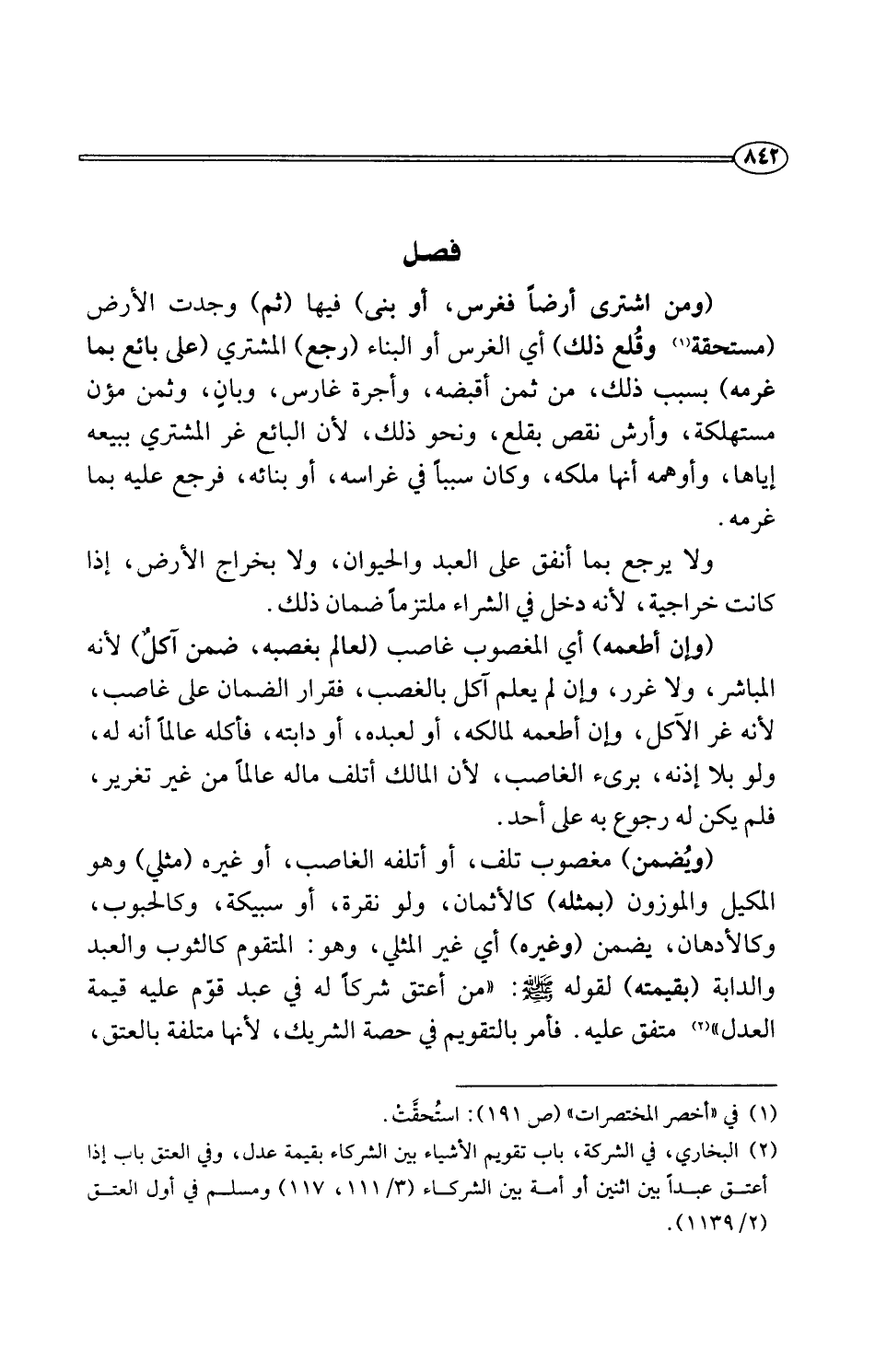 (¬2) البخاري، في الشركة، باب تقويم الأشياء بين الشركاء بقيمة عدل، وفي العتق باب إذا أعتق عبدًا بين اثنين أو أمة بين الشركاء (3/ 111، 117) ومسلم في أول العتق (2/ 1139).