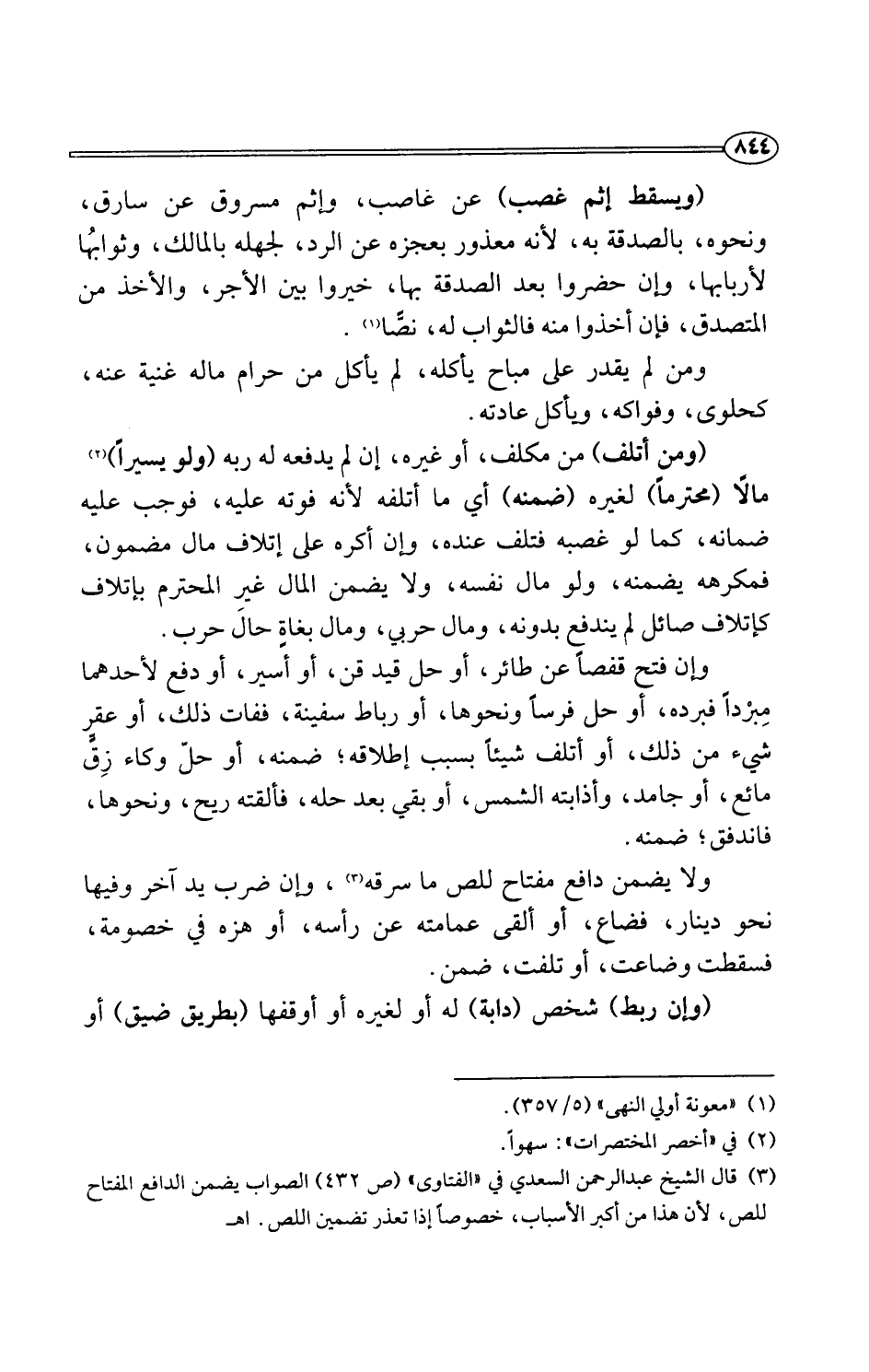 (¬3) قال الشيخ عبد الرحمن السعدي في "الفتاوى" (ص 432) الصواب يضمن الدافع المفتاح للص، لأن هذا من أكبر الأسباب، خصوصًا إذا تعذر تضمين اللص. اهـ