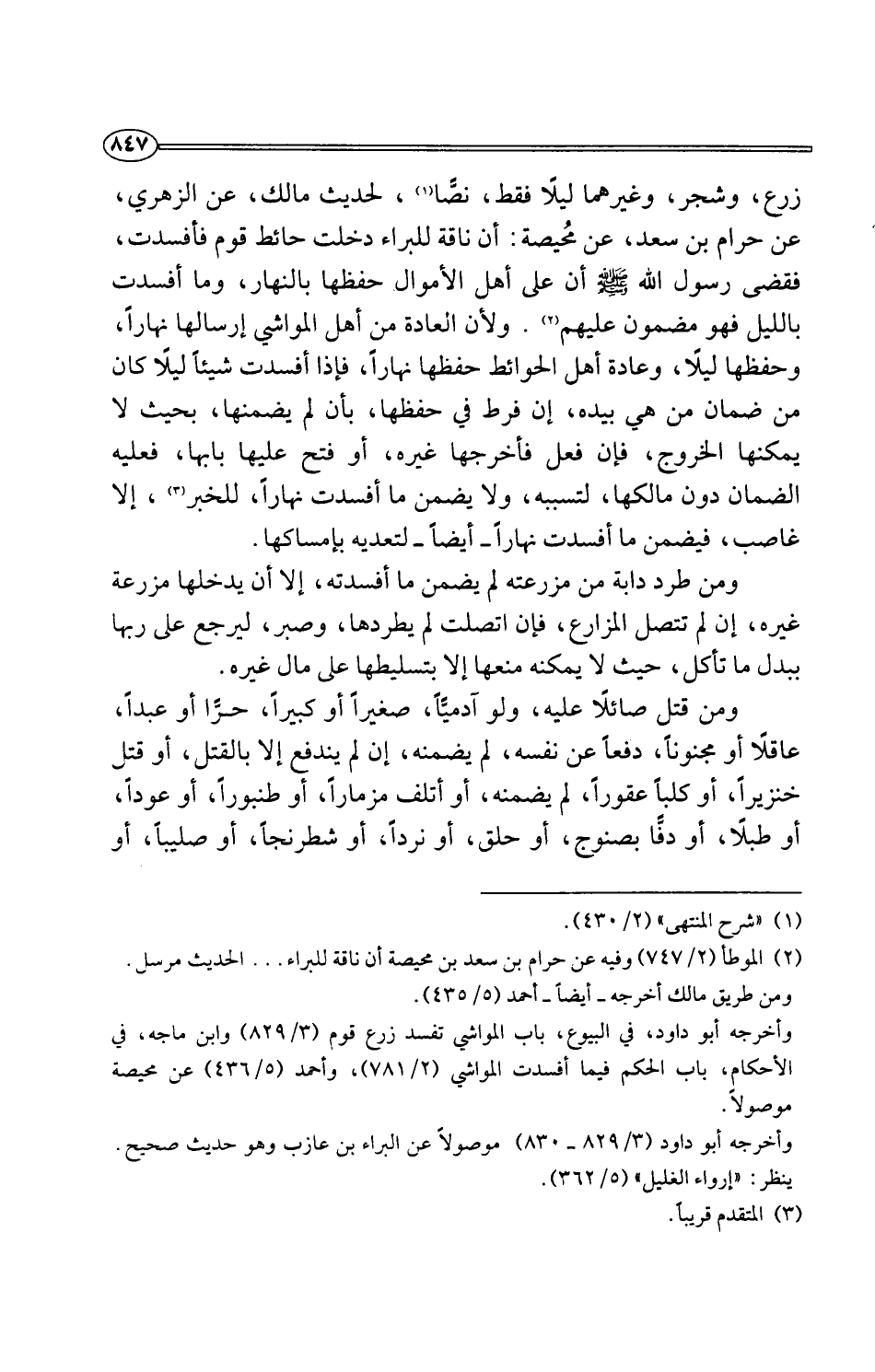 (¬2) الموطأ (2/ 747) وفيه عن حرام بن سعد بن محيصة أن ناقة للبراء. . . الحديث مرسل. ومن طريق مالك أخرجه -أيضًا- أحمد (5/ 435).