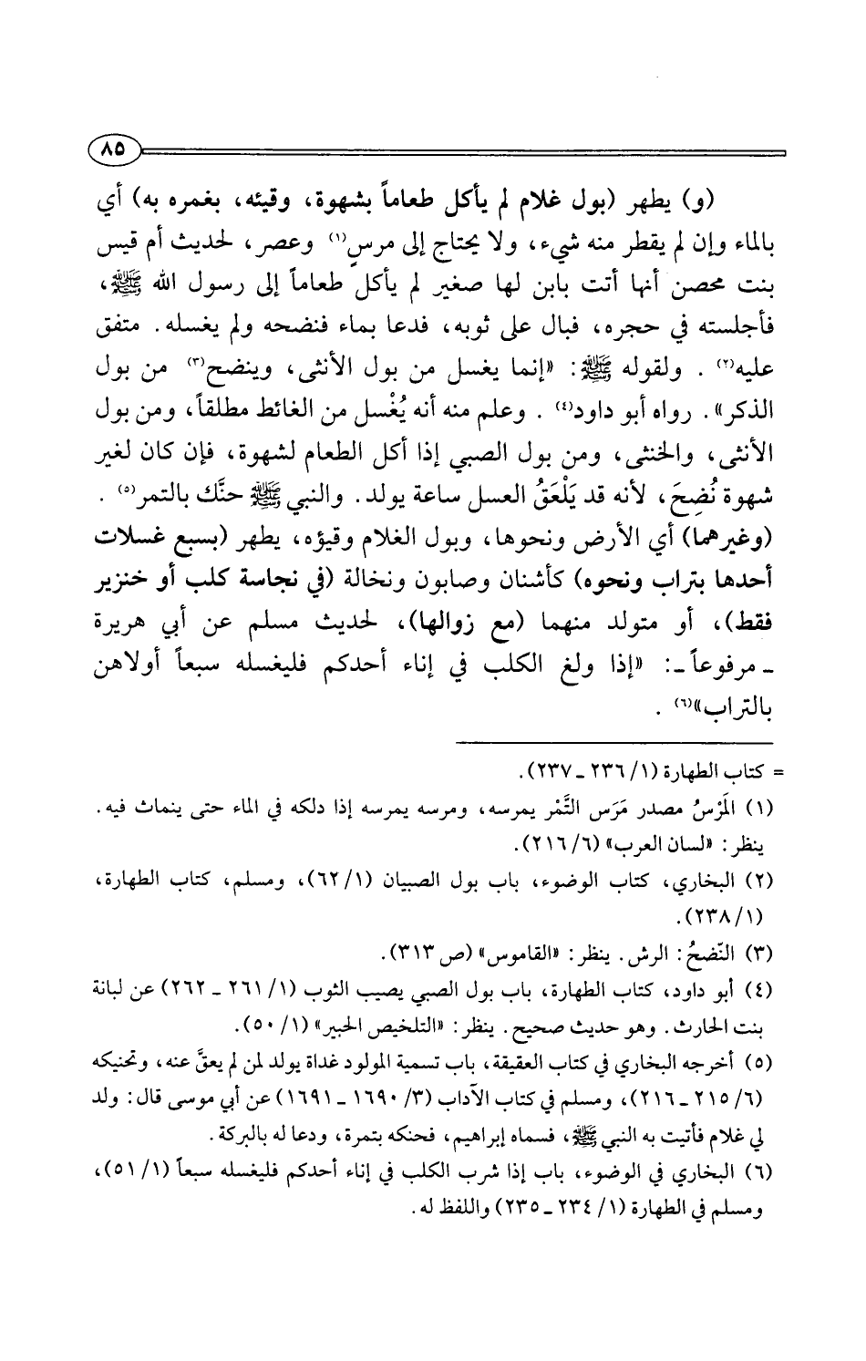 (¬2) البخاري، كتاب الوضوء، باب بول الصبيان (1/ 62)، ومسلم، كتاب الطهارة، (1/ 238).