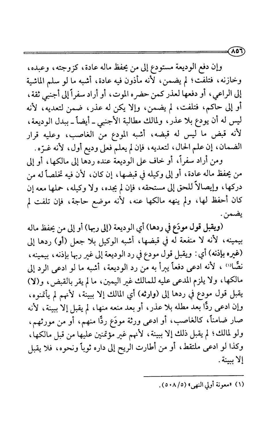 (ويقبل قول مودعَ في ردها) أي الوديعة (إلى ربها) أو إلى من يحفظ ماله بيمينه، لأنه لا منفعة له في قبضها، أشبه الوكيل بلا جعل (أو) ردها إلى (غيره بإذنه) أي: ويقبل قول مودع في رد الوديعة إلى غير ربها بإذنه، بيمينه، نصًّا (¬1)، لأنه ادعى دفعًا يبرأ به من رد الوديعة، أشبه ما لو ادعى الرد إلى مالكها، ولا يلزم المدعى عليه للمالك غير اليمين، ما لم يقر بالقبض، و (لا) يقبل قول مودع في ردها إلى (وارثه) أي المالك إلا ببينة، لأنهم لم يأتمنوه، وإن ادعى ردًّا بعد مطله بلا عذر، أو بعد منعه منها، لم يقبل إلا ببينة، لأنه صار ضامنًا، كالغاصب، أو ادعى ورثة مودعَ ردًّا منهم، أو من مورثهم، ولو لمالك، لم يقبل ذلك إلا ببينة، لأنهم غير مؤتمين عليها من قبل مالكها، وكذا لو ادعى ملتقط، أو من أطارت الريح إلى داره ثوبًا ونحوه، فلا يقبل إلا ببينة.