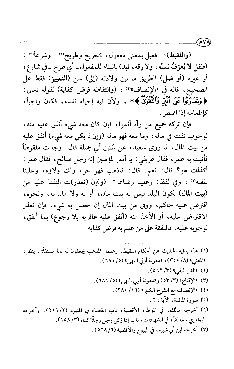 (¬1) هذا بداية الحديث عن أحكام اللقيط. وعلماء المذهب يجعلون له بابًا مستقلًا. ينظر: "المغني" (8/ 350)، "معونة أولي النهى" (5/ 681).