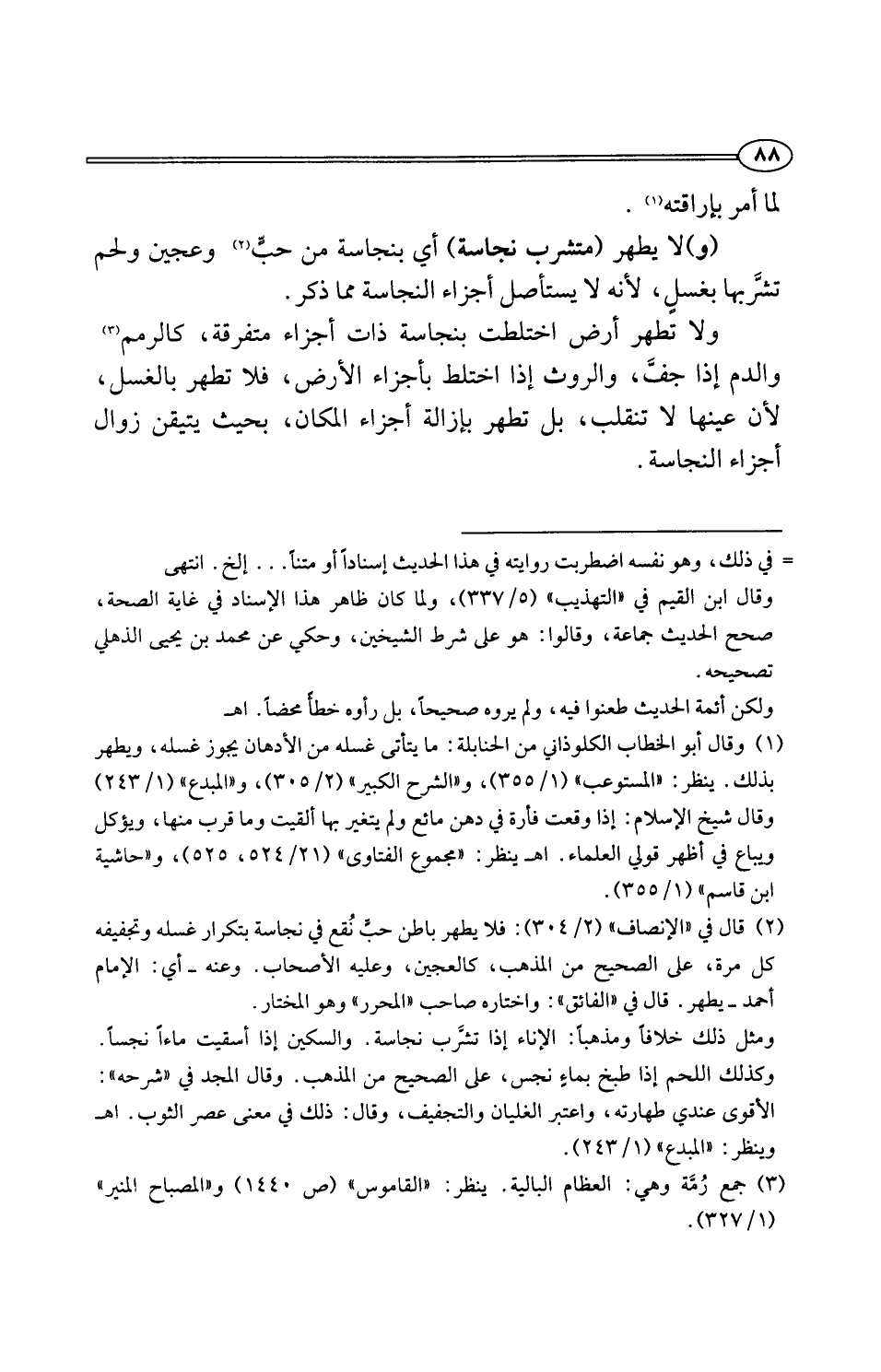 (¬2) قال في "الإنصاف" (2/ 304): فلا يطهر باطن حبٍّ نُقع في نجاسة بتكرار غسله وتجفيفه كل مرة، على الصحيح من المذهب، كالعجين، وعليه الأصحاب. وعنه -أي: الإمام أحمد- يطهر. قال في "الفائق": واختاره صاحب "المحرر" وهو المختار.