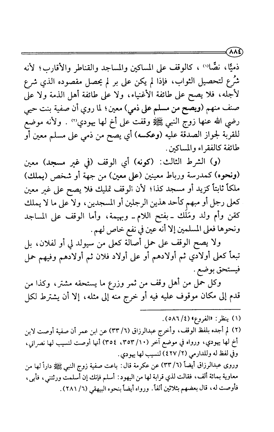 (¬2) لم أجده بلفظ الوقف، وأخرج عبد الرزاق (6/ 33) عن ابن عمر أن صفية أوصت لابن أخ لها يهودي، ورواه في موضع آخر (10/ 353، 354) أنها أوصت لنسيب لها نصراني، وفي لفظ له وللدارمي (2/ 427) لنسيب لها يهودي.