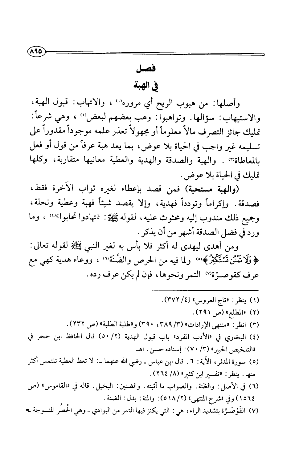 (¬5) سورة المدثر، الآية: 6. قال ابن عباس -رضي اللَّه عنهما-: لا تعط العطية تلتمس أكثر منها. ينظر: "تفسير ابن كثير" (8/ 264).