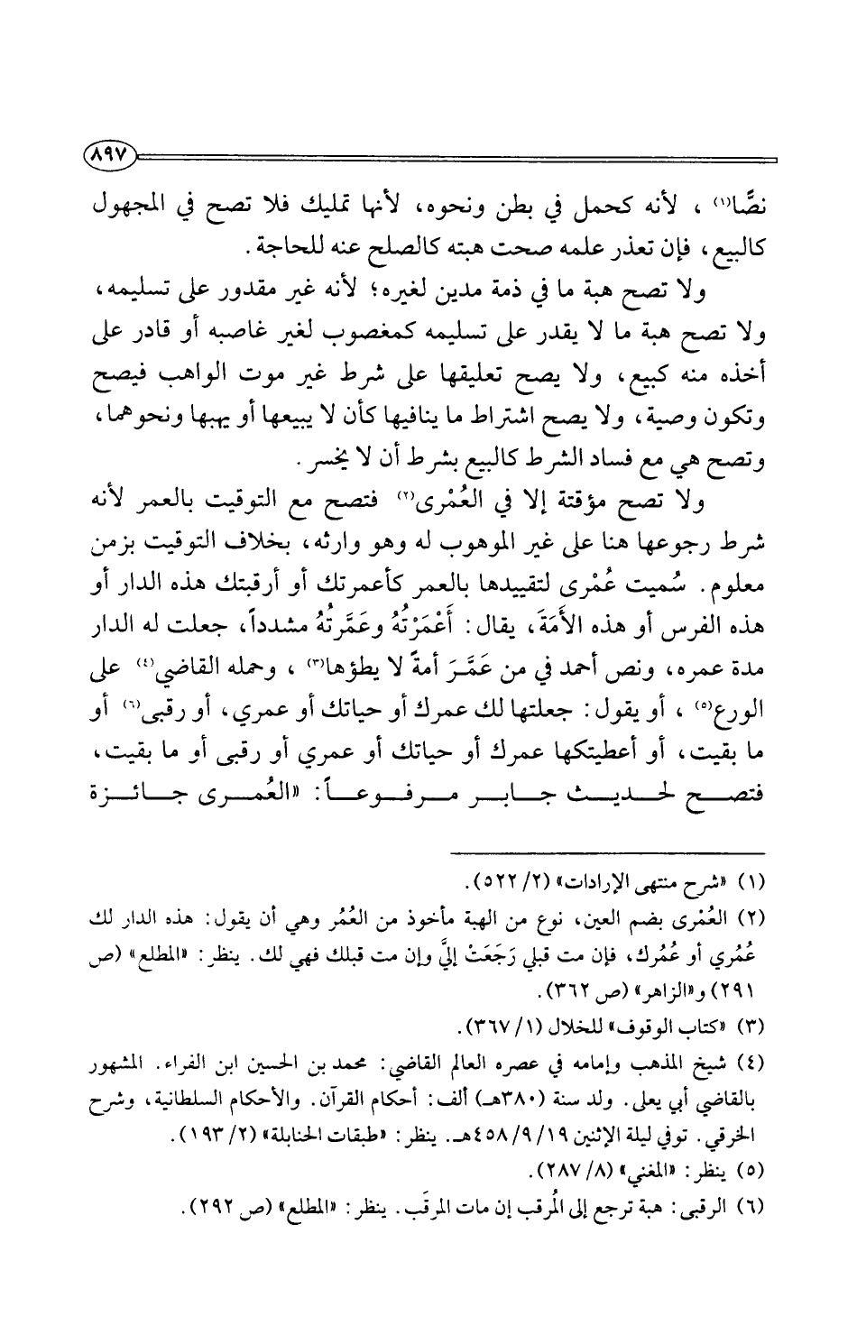 (¬2) العُمْرى بضم العين، نوع من الهبة مأخوذ من العُمُر وهي أن يقول: هذه الدار لك عُمُري أو عُمُرك، فإن مت قبلي رَجَعَتْ إليَّ وإن مت قبلك فهي لك. ينظر: "المطلع" (ص 291) و"لزاهر" (ص 362).