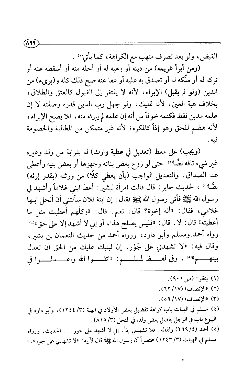 (¬4) مسلم في الهبات باب كراهة تفضيل بعض الأولاد في الهبة (3/ 1244)، وأبو داود في البيوع باب في الرجل يفضل بعض ولده في النحل (3/ 815).