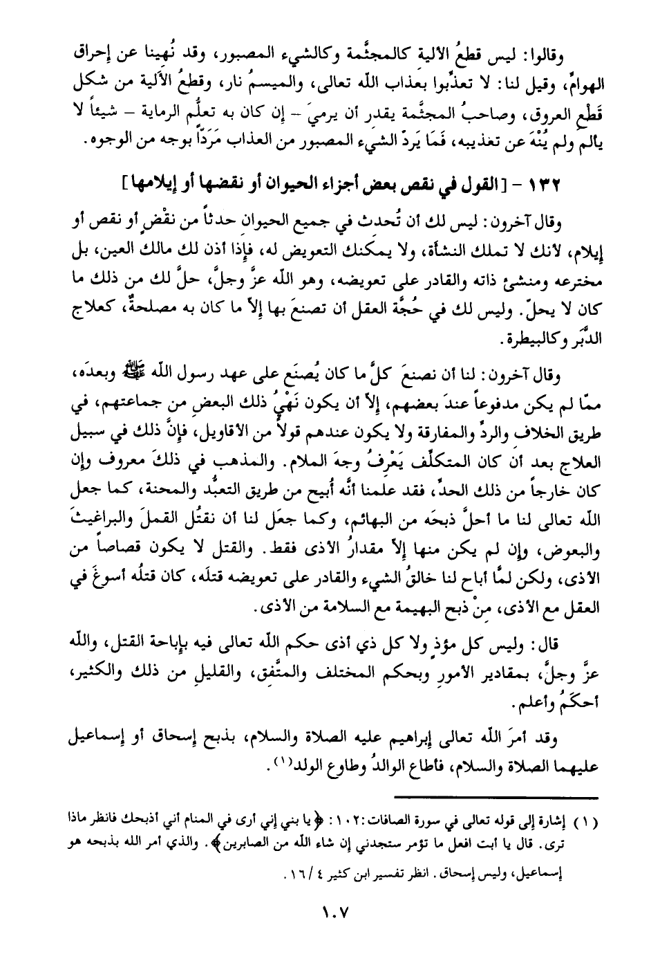 132-[القول في نقص بعض أجزاء الحيوان أو نقضها أو إيلامها]