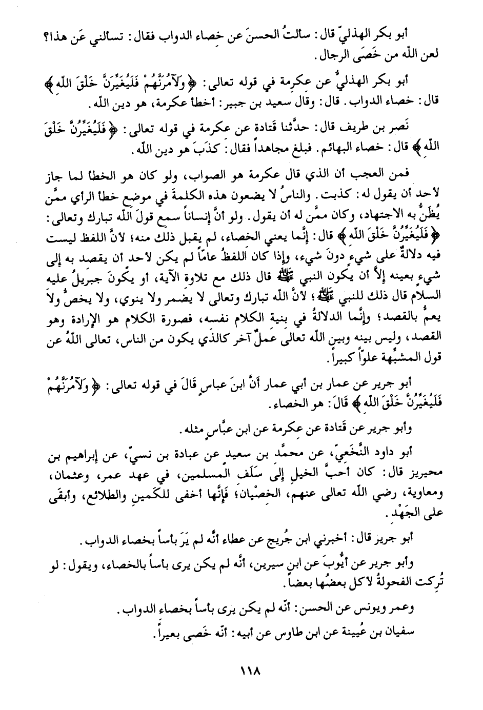 قال: خصاء الدواب. قال: وقال سعيد بن جبير: أخطأ عكرمة، هو دين الله.