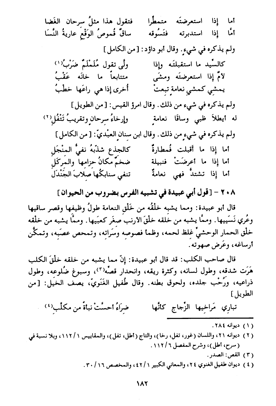 208-[قول أبي عبيدة في تشبيه الفرس بضروب من الحيوان]