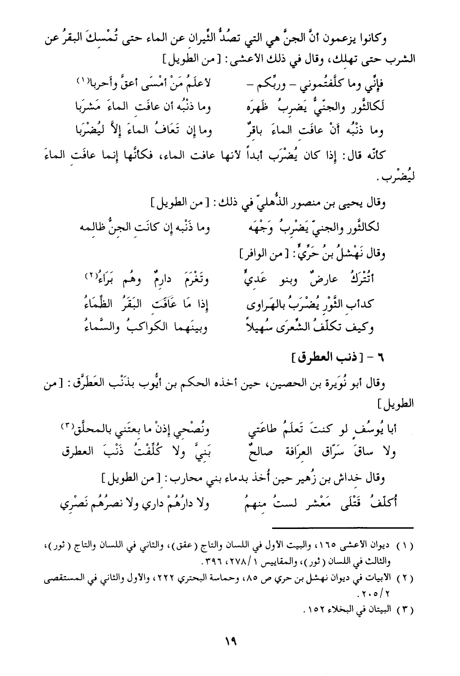 وكانوا يزعمون أنّ الجنّ هي التي تصدّ الثّيران عن الماء حتى تمسك البقر عن الشرب حتى تهلك، وقال في ذلك الأعشى: [من الطويل]