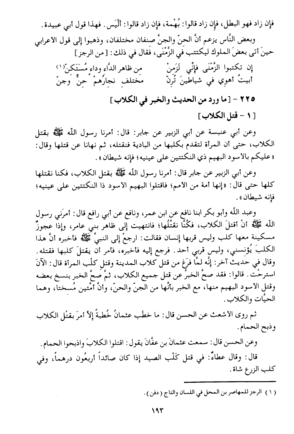 225-[ما ورد من الحديث والخبر في الكلاب]
